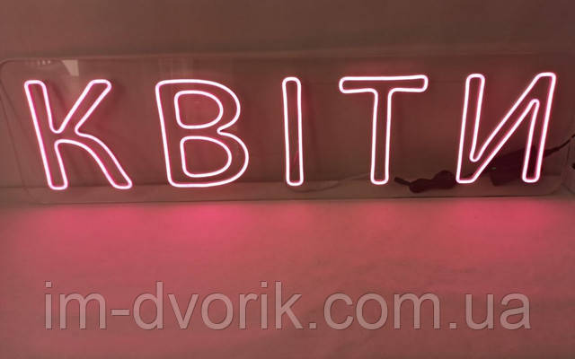 Неонова вивіска КВІТИ рожева 950х250мм з пультом та блоком живлення